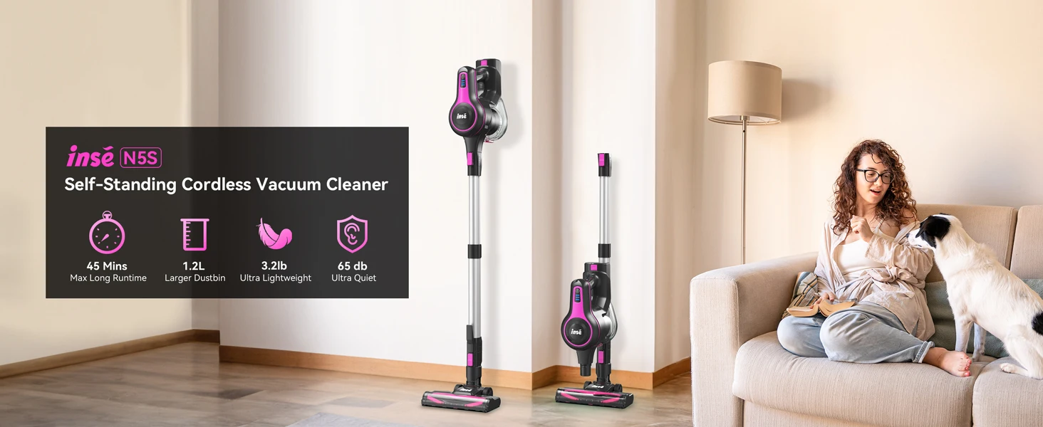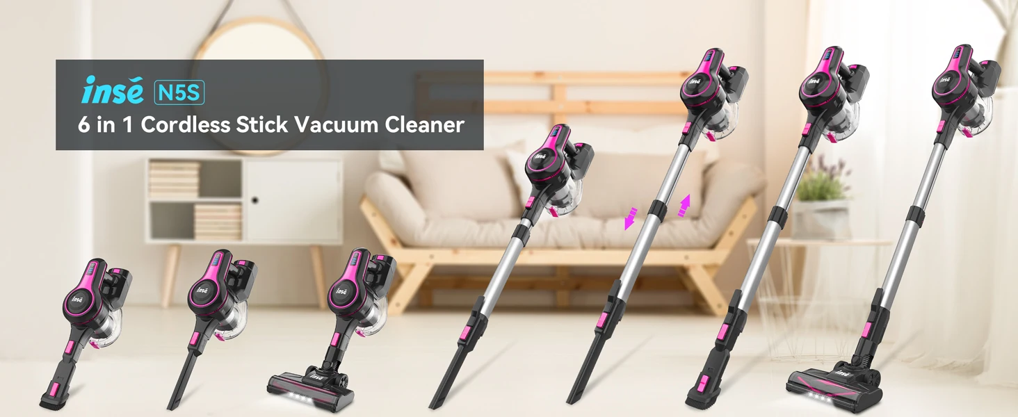 INSE N5T Cordless Vacuum Cleaner, 25Kpa 1.2L Large Dustbin, 6 in 1 Handheld Vacuum for Household Cleaning