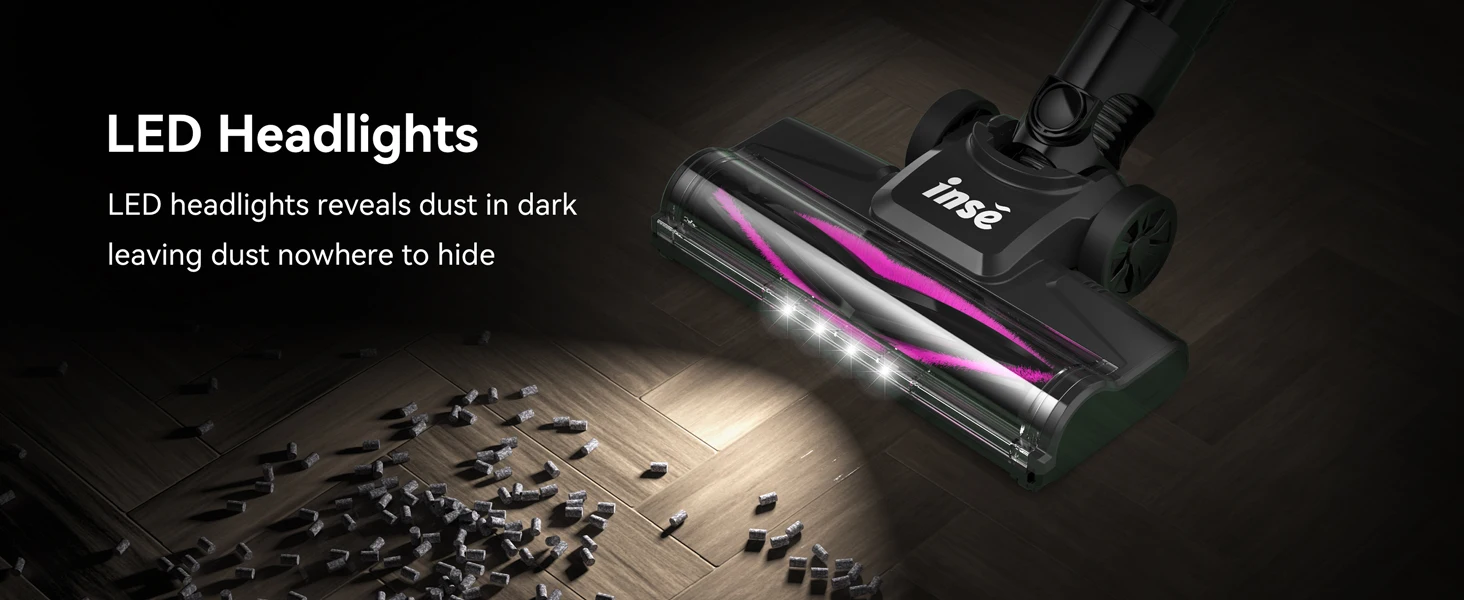 Flexible LED Motorized Floor Brush -- Maneuverable 150° swivels sideways and 90°up and down that make you praise the cordless vacuum for how well it cleans and maneuvers across their floors