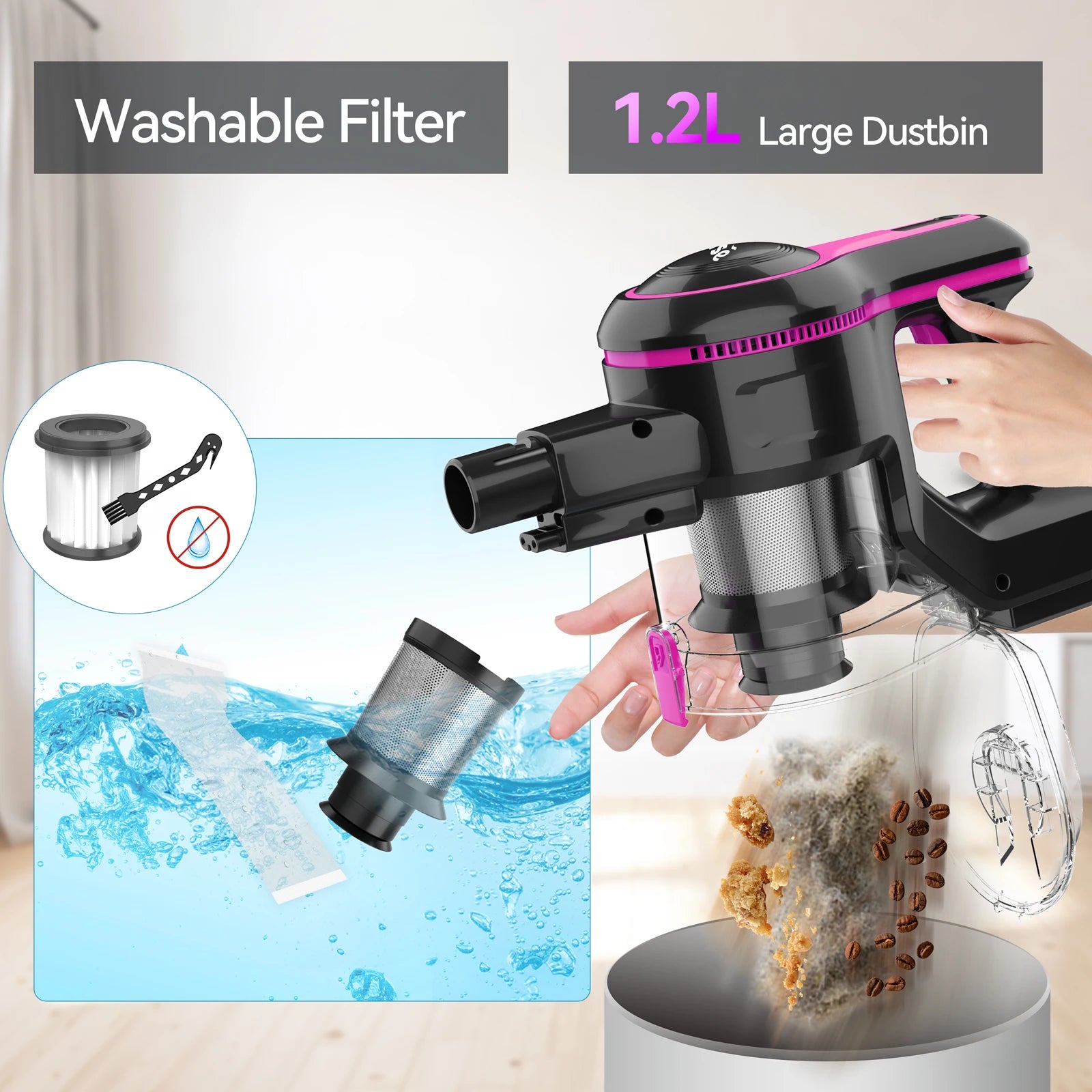 1.2L Larger Dust Cup and One Press Button
