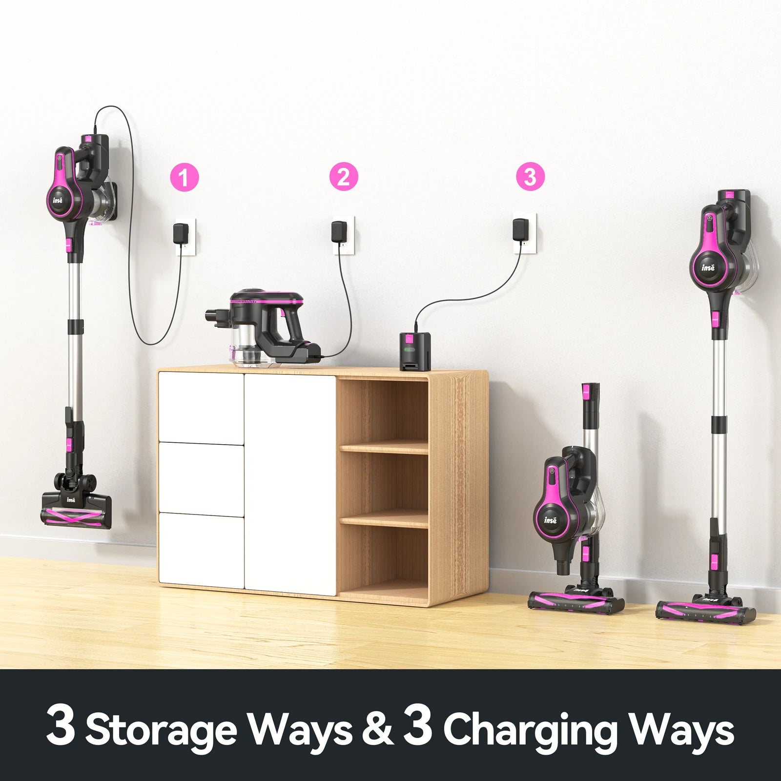 Lightweight & Wall Mount -- The main motor of the hardwood floor vacuum only weighs 3.2lb, extremely suitable for one-hand cleaning. Wall mount or upright storage ways, effectively save space